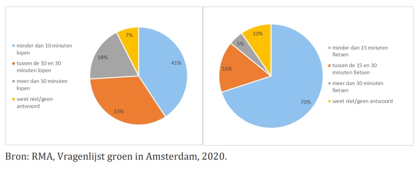 Voor de afstand wordt 10 minuten lopen naar verblijfsfgroen en 15 minuten fietsen naar een buitengebied als norm gehanteerd (groenvisie 2020-2050). Dit wordt niet gehaald voor een grote groep bewoners.